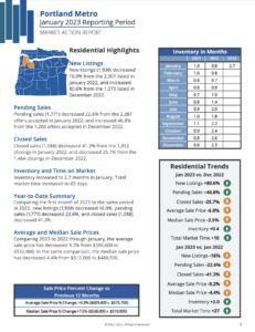 Detailed reports on the Portland metro area and surrounding regions for the previous month are available below. If you wish to receive the summary and reports in your inbox monthly, click here.